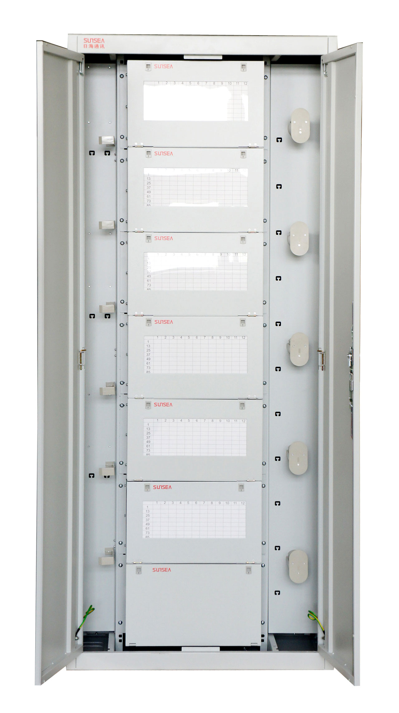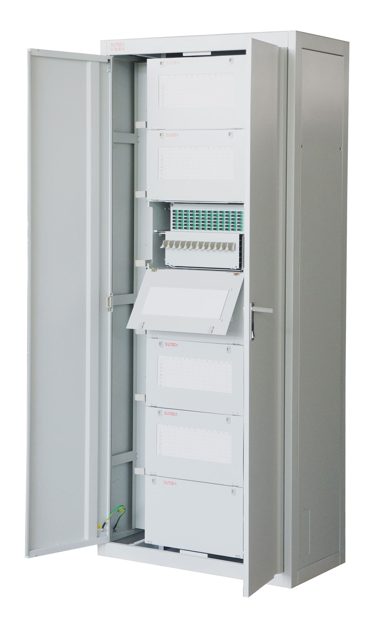 5、标准19”结构,光缆的引入开剥、调度可实现全正面操作; 机架优先选半封闭式结构,可选封闭式结构,其防尘效果好。